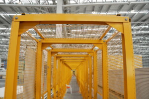 Vanguard developed a tunnel walkway system that provided robust protection for the warehouse’s pedestrian areas. This solution involved custom-designed barriers that prevented any potential accidents involving falling goods, effectively securing the pathways below.