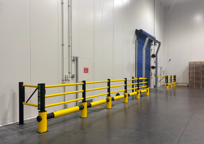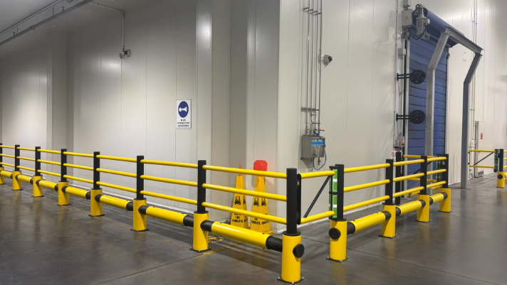 To create a clear, impact-rated walkway in areas with no physical protection for pedestrians from forklifts, Kilcoy installed a series of flexible, energy-absorbing barriers.