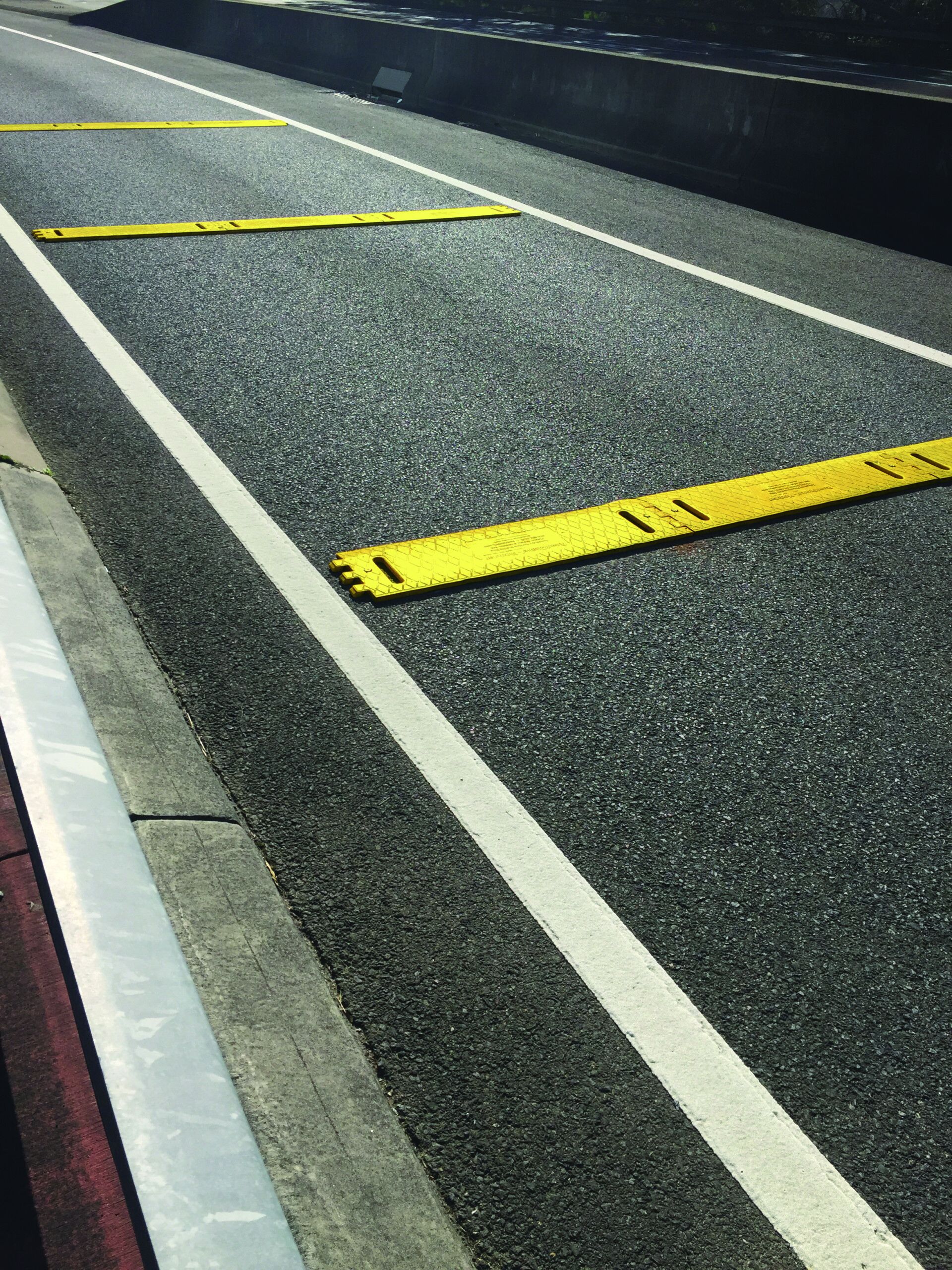 Traditional portable speed humps can only be used in 30kmh reduced speed zones, whereas these rumble strips are designed to be used on 100kmh motorways whilst generating the same sound and vibration as traditional ‘milled-in’ or permanent rumble strips.