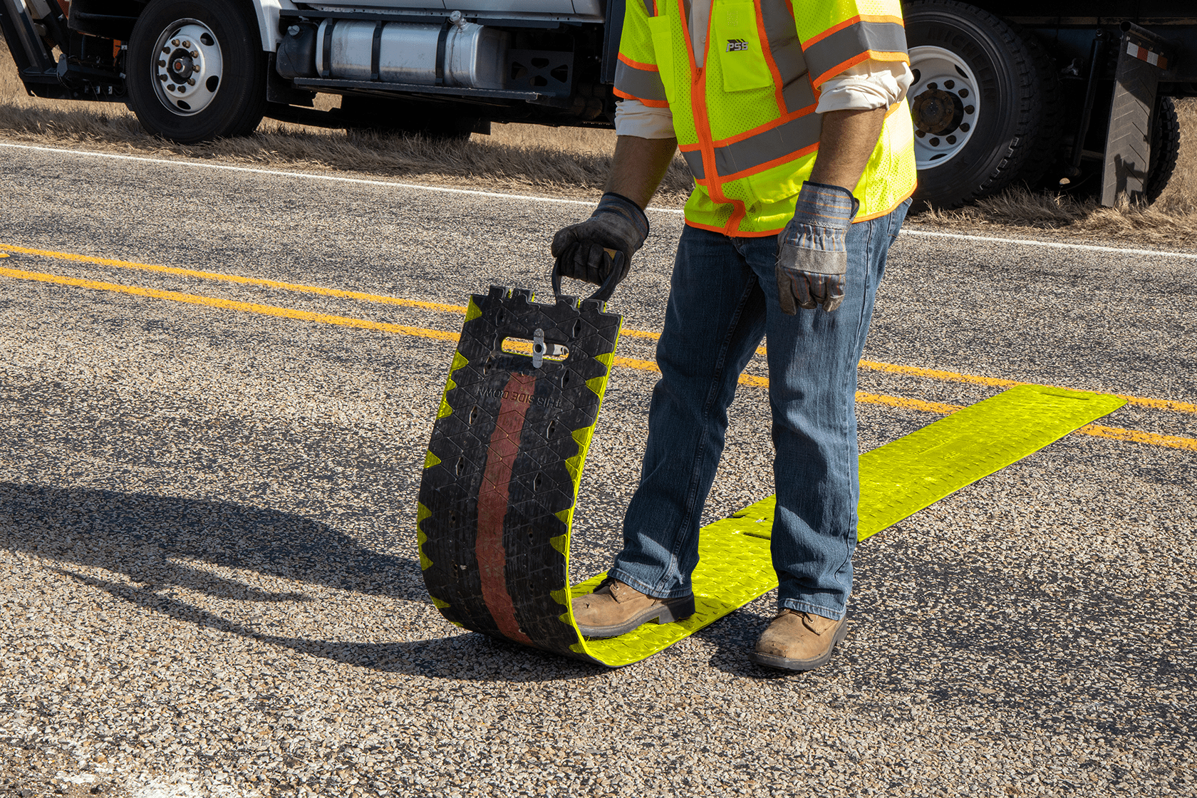 RoadQuake® 2F Temporary Portable Rumble Strip.